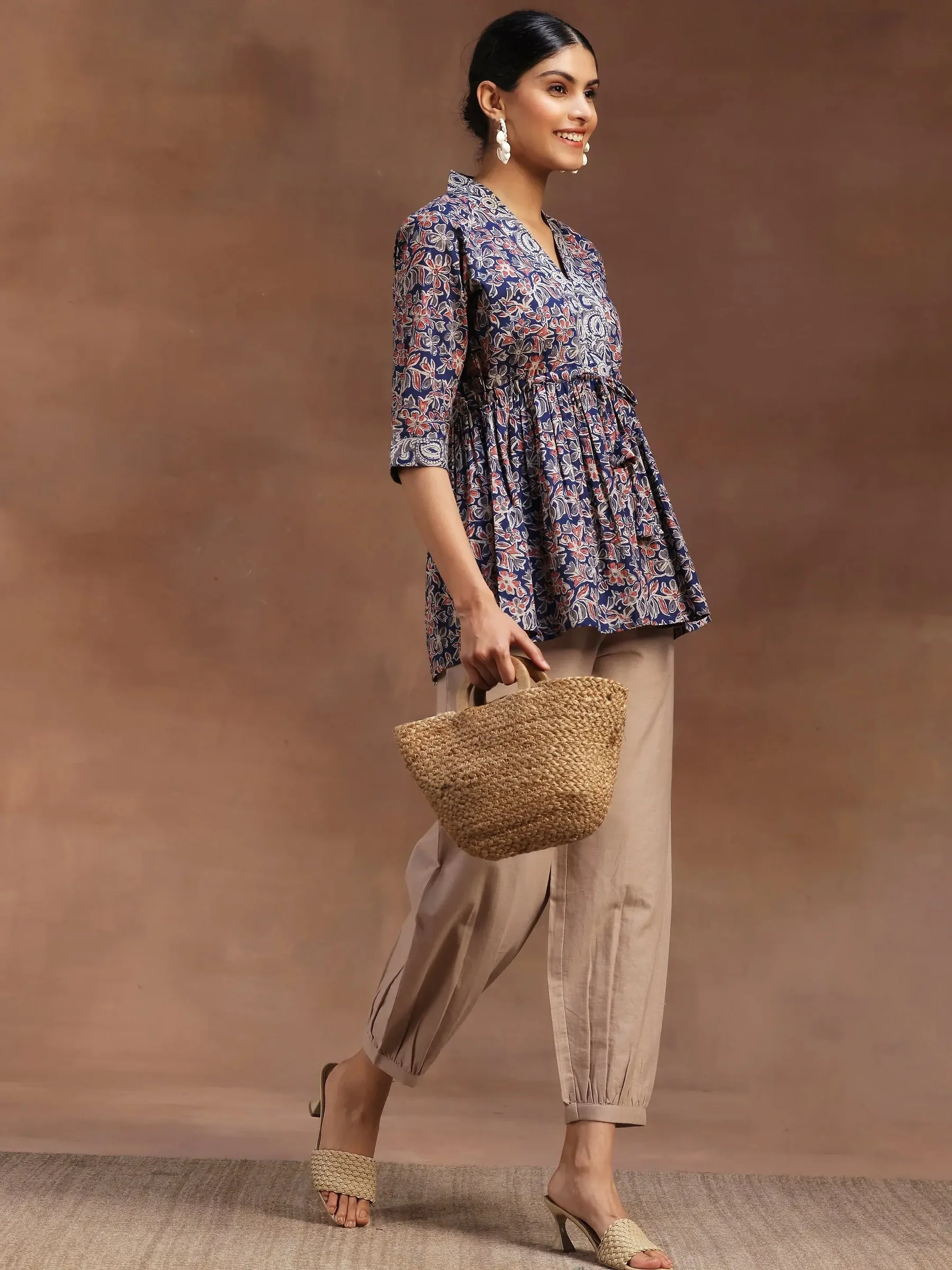 Blue Printed Cotton A-Line Kurti