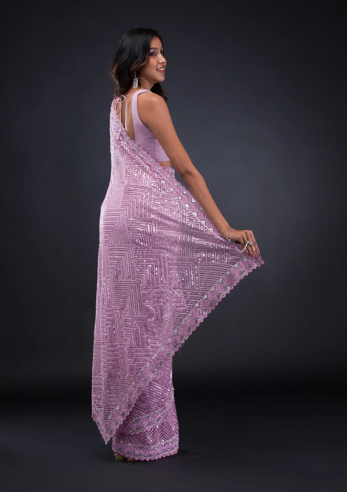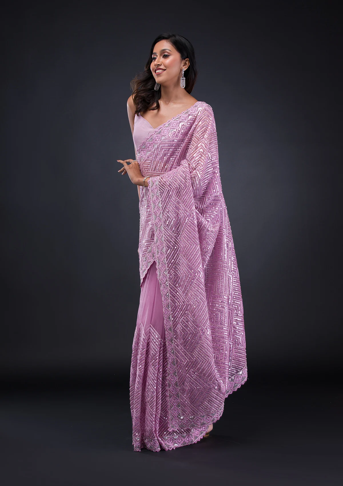 Women'S Chiffon Green Printed Embellished Designer Saree with Unstitched Blouse
